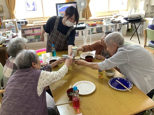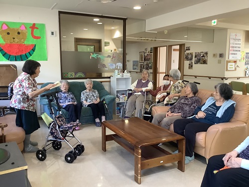 以前にもお伝えしたのですが、1階入居者様には詩吟の先生がいらっしゃいます。今日も詩吟を披露して頂きました。