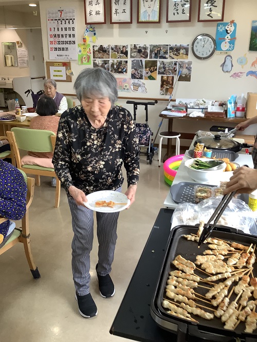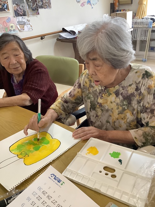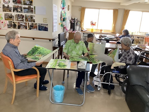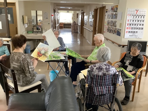 作品をお持ち頂き他階の入居者様にみて頂きました。皆さんみとれています。
