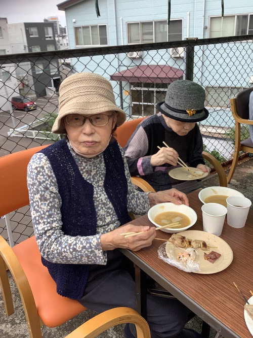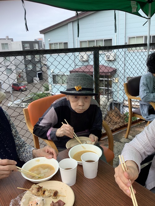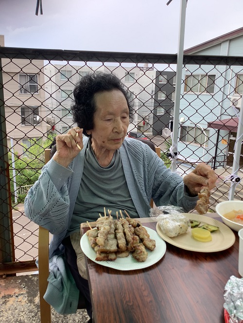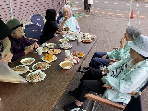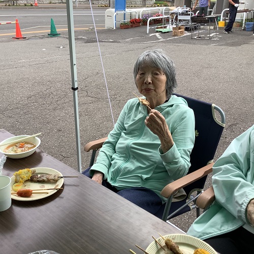 今年は8月25日 暑かったですが何とか過ごせそうなお天気で本当に良かったです。入居者様も楽しそうでした。コマクサの家はBBQのできる敷地が狭くてテントを張るのにも苦労するのですが、本社の皆様や行事委員の職員が頑張ってセッティングしてくれました。ありがとうございます。