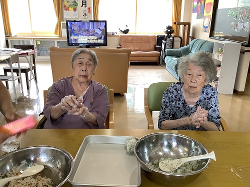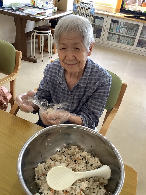 まずは、おにぎりを朝入居者様に作って頂いてから始まります😄