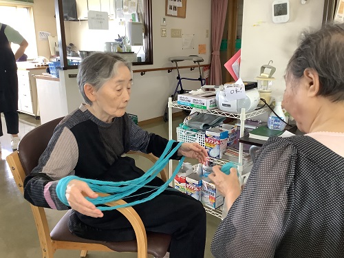コマクサの家には編み物の得意な入居者様がいらっしゃいます。毛糸を使って手袋や靴下セーターを編んだ後、それを使わなくなたら毛糸をほどきまた違う作品を作ります。
