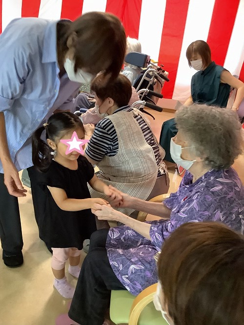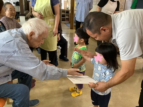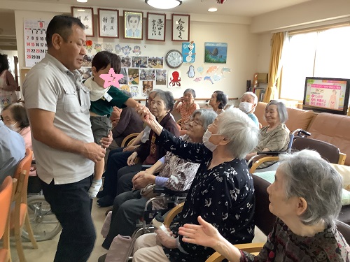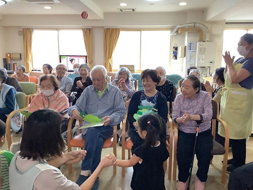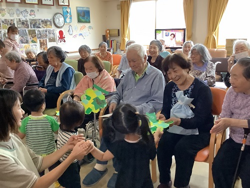 入居者様は可愛い園児様の姿を見ただけで涙ぐむ方、そして本当に嬉しそうな笑顔でお迎えくださる方々でとても和やかな雰囲気の中で行う事ができました。