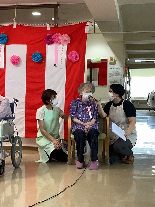 コマクサの家でも敬老会を行いました。今年は4名の入居者様のお祝いをさせて頂きました。