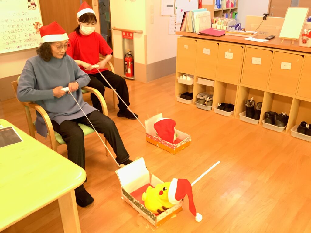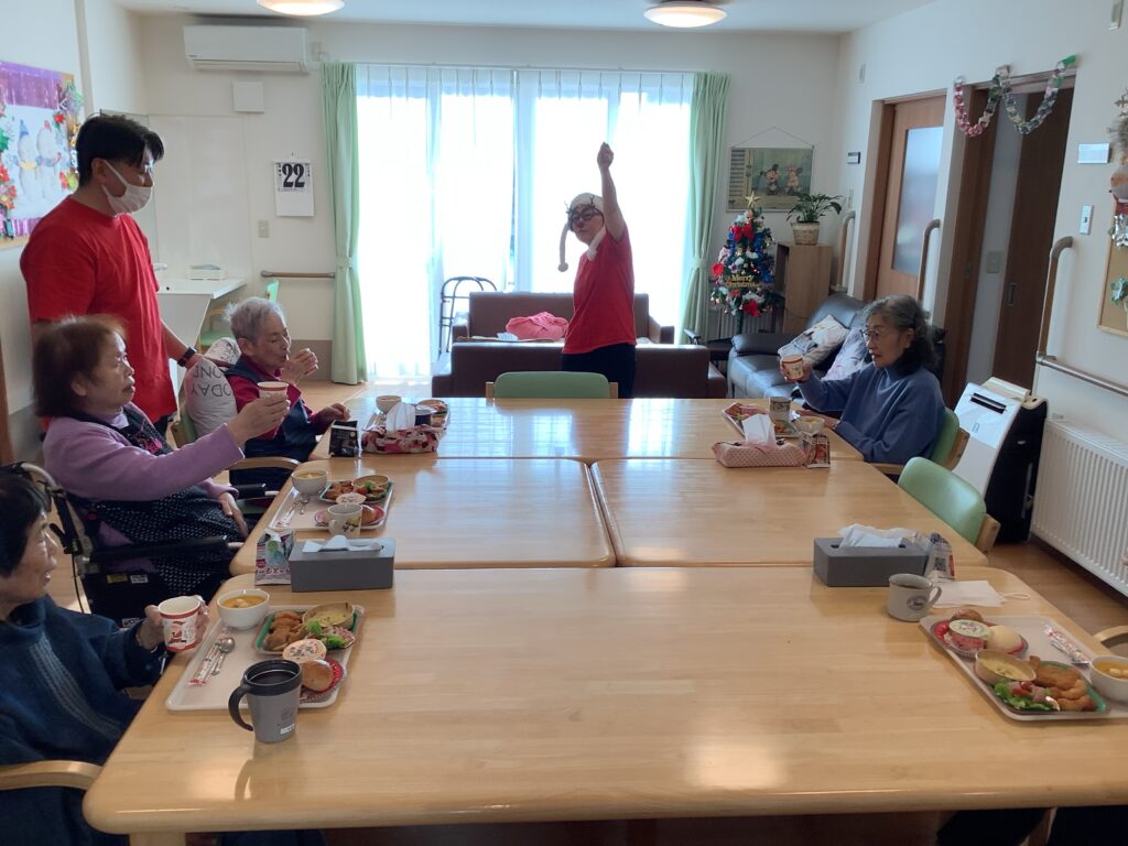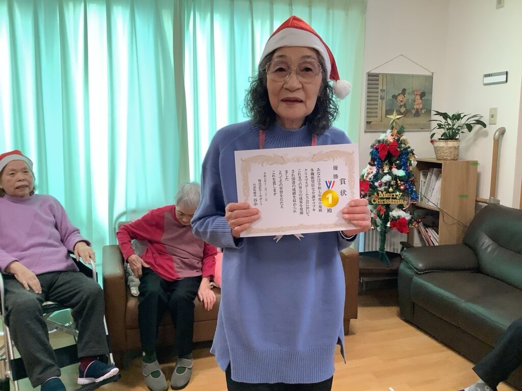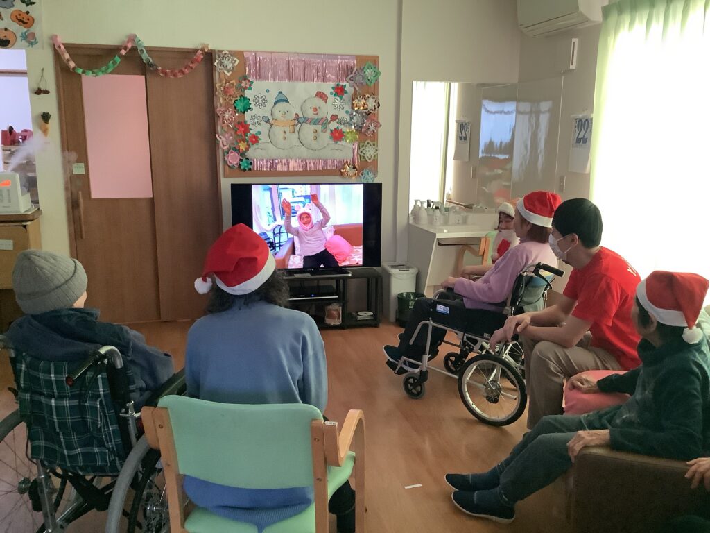 小規模にて12月22日にクリスマス会を行いました。シャンメリーで乾杯から始まり、職員が朝から作ってくれたクリスマスランチを食べて、午後からは皆できよしこの夜など合唱♪ゲーム大会では景品も当たりました。優勝者には賞状とメダルも!!最後は今年を振り返るスライドショー☆おやつにケーキをいただき、帰りにはクリスマスプレゼントをお渡しさせていただきました♪