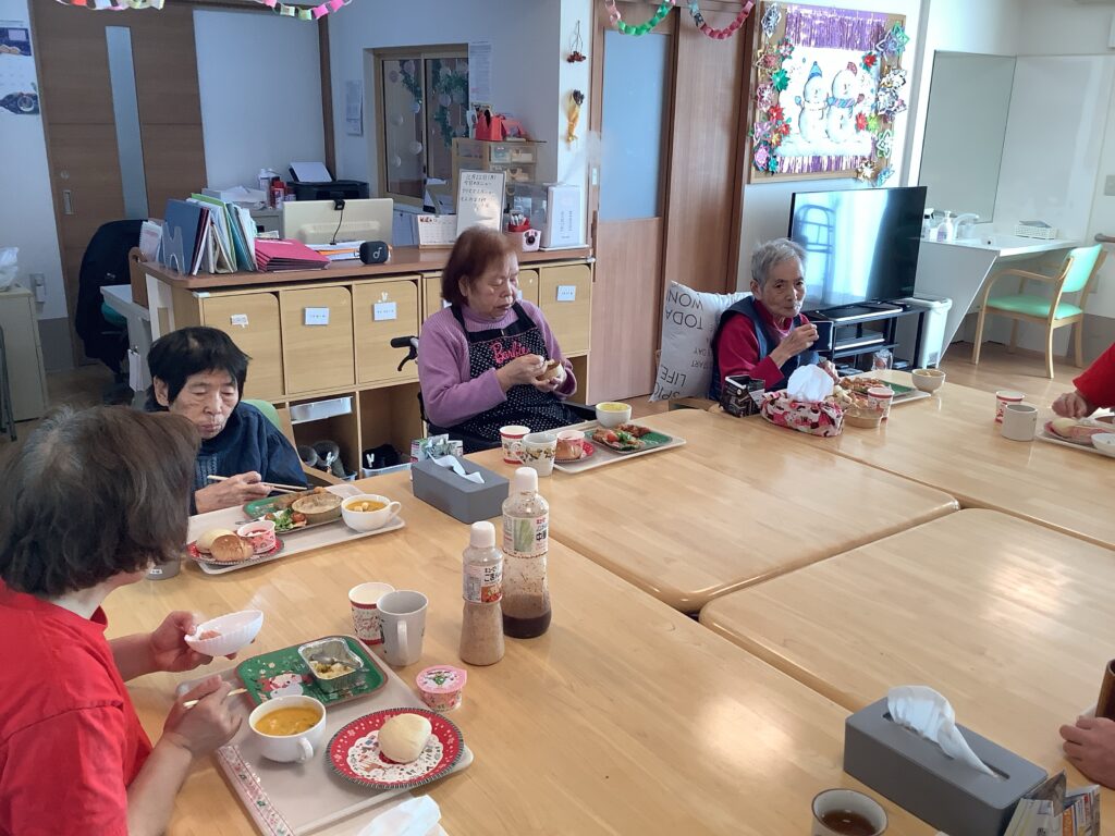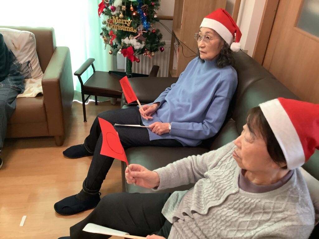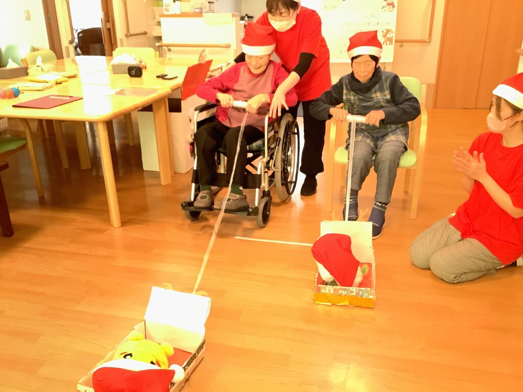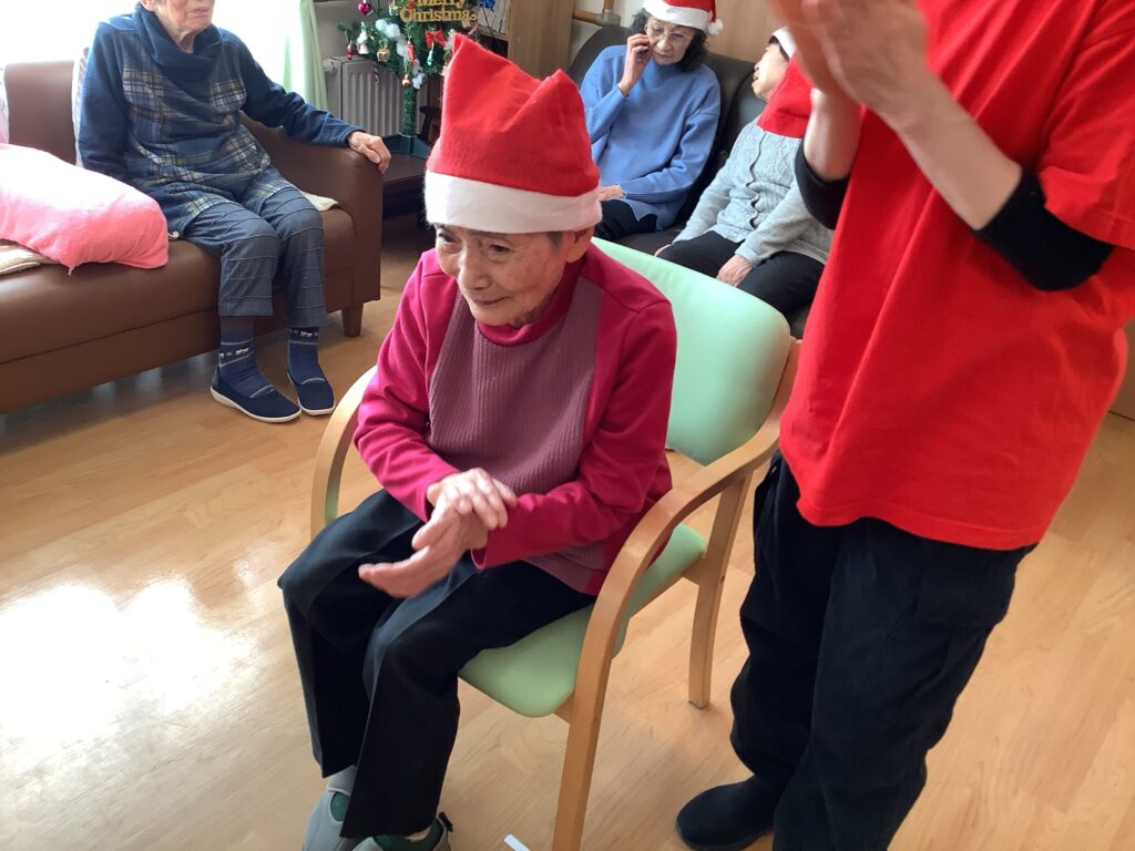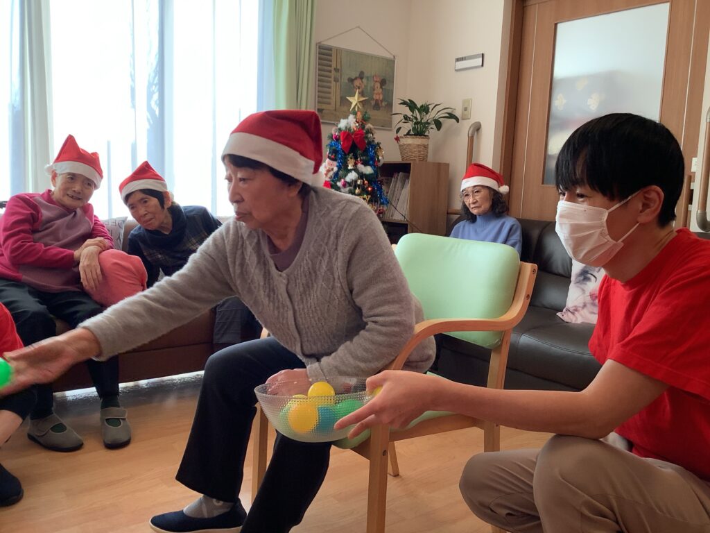 小規模にて12月22日にクリスマス会を行いました。シャンメリーで乾杯から始まり、職員が朝から作ってくれたクリスマスランチを食べて、午後からは皆できよしこの夜など合唱♪ゲーム大会では景品も当たりました。優勝者には賞状とメダルも!!最後は今年を振り返るスライドショー☆おやつにケーキをいただき、帰りにはクリスマスプレゼントをお渡しさせていただきました♪