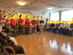 小規模にて12月22日にクリスマス会を行いました。シャンメリーで乾杯から始まり、職員が朝から作ってくれたクリスマスランチを食べて、午後からは皆できよしこの夜など合唱♪ゲーム大会では景品も当たりました。優勝者には賞状とメダルも!!最後は今年を振り返るスライドショー☆おやつにケーキをいただき、帰りにはクリスマスプレゼントをお渡しさせていただきました♪