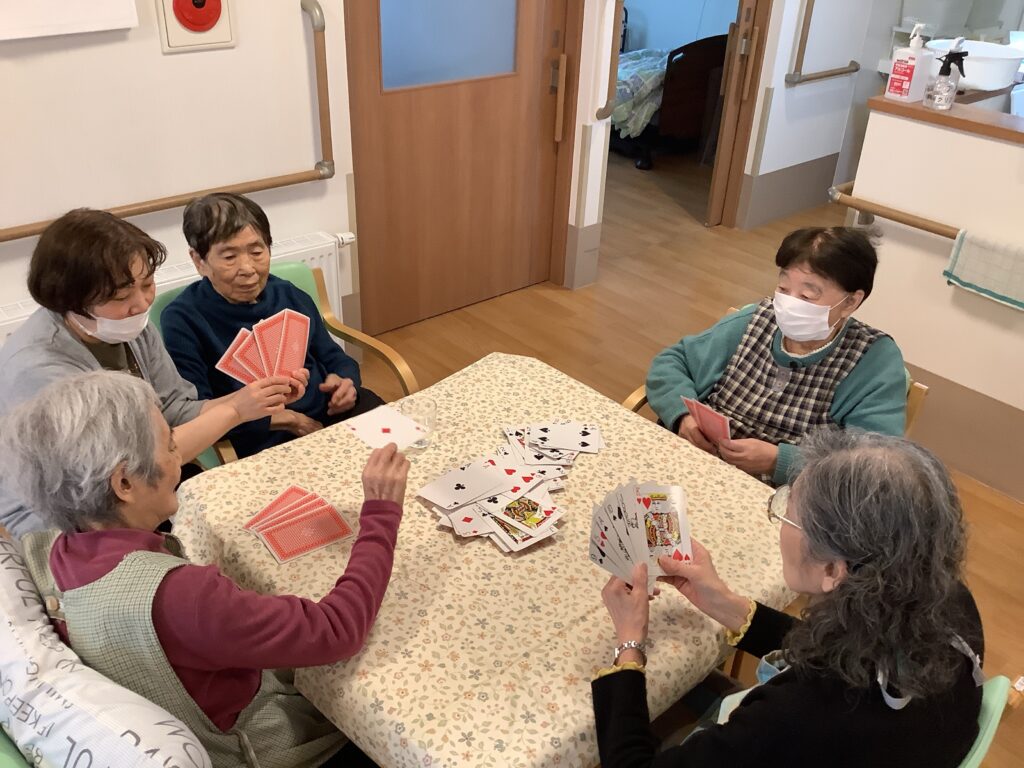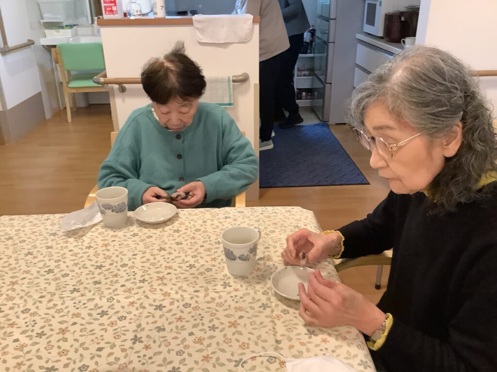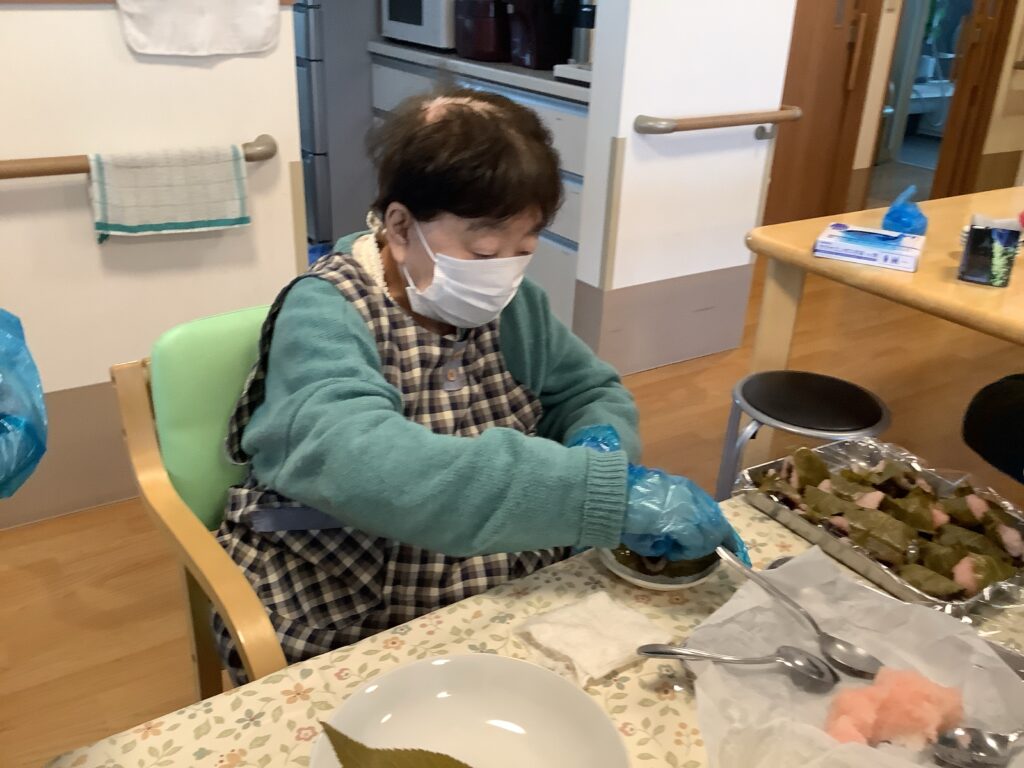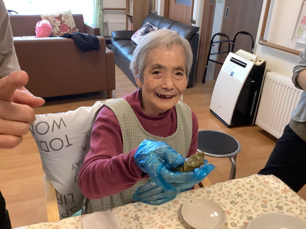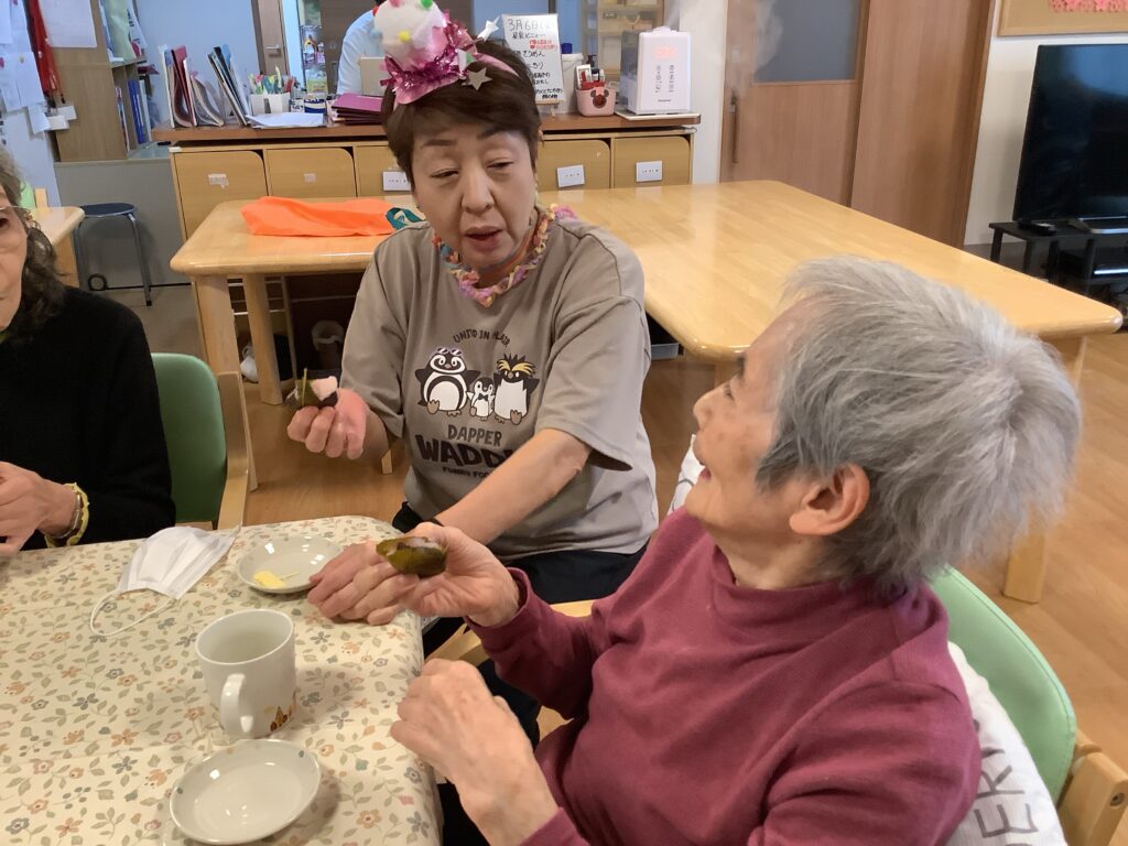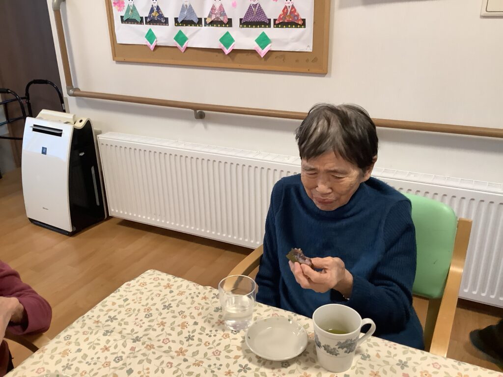 3月6日 小規模にて少し遅れてひな祭り行事として、みんなで桜餅を作りました♪皆さん手際良くあっという間に出来てしまったので、オヤツの時間までババ抜き。オヤツの時には、今日誕生日の職員のお祝いもしてから、一緒に美味しくいただきました😁