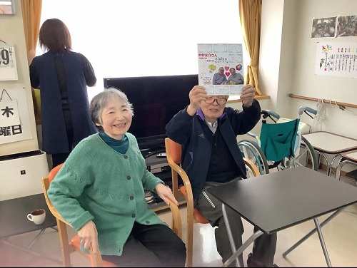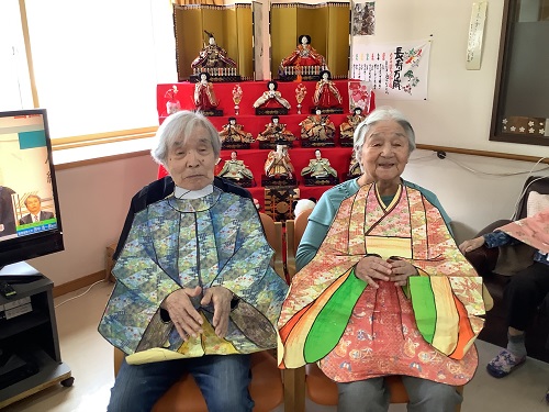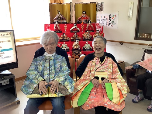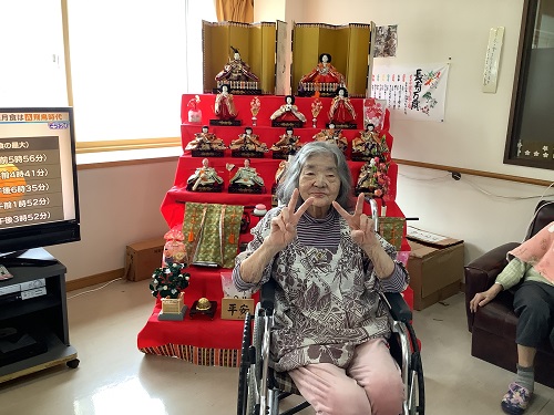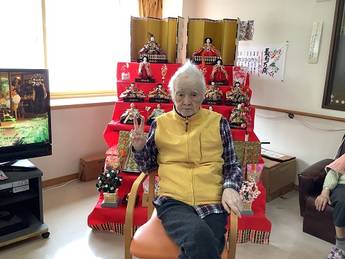 最近入居されたお子様が男性しかいらっしゃらない入居者様は、ひな壇飾りをご覧になり「こんな立派なお雛様を飾るんだね~」と喜んでくださいました。