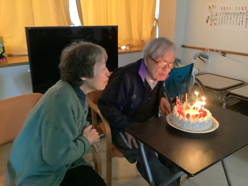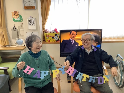 ご夫婦で入居されている方がおられます。入居されている階は違うのですが、ご主人の誕生日には奥様も他階からお祝いにかけつけ一緒にお祝いしてくださいました。